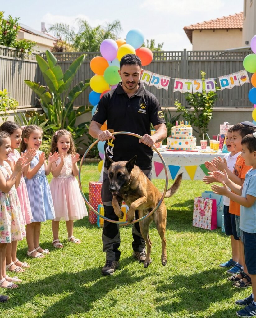אני מגיע אליכם עם כלבים מאולפים ומלאי אנרגיה טובה, כדי להפוך את יום ההולדת לחוויה אחרת. הילדים לומדים איך לגשת לכלב, ללטף נכון, לתקשר בשפת הגוף שלו – דרך משחקים, משימות משותפות והדגמות חיות.