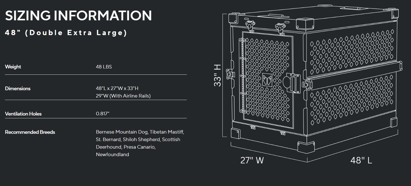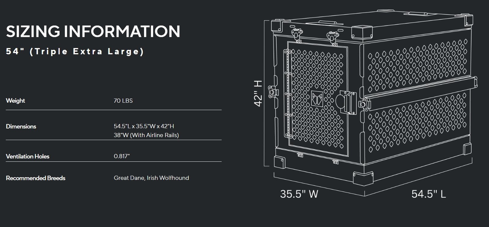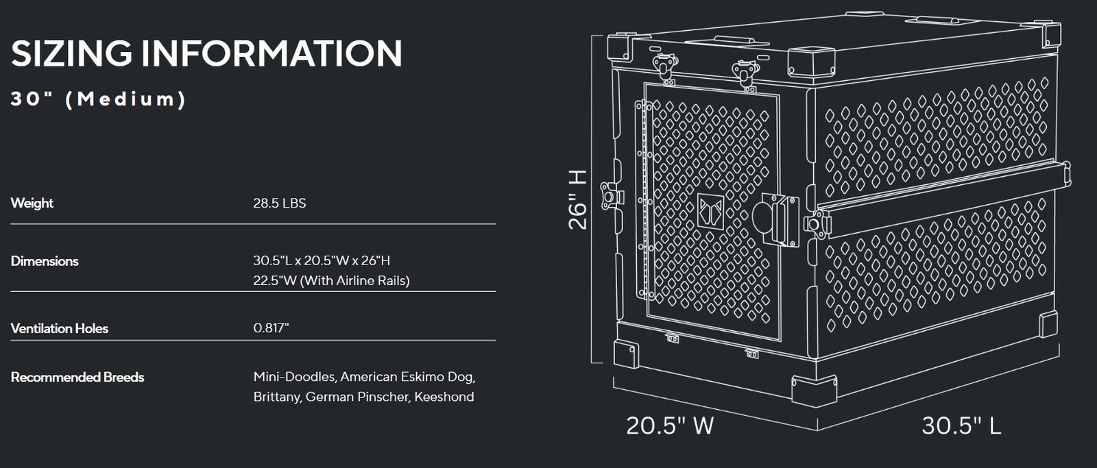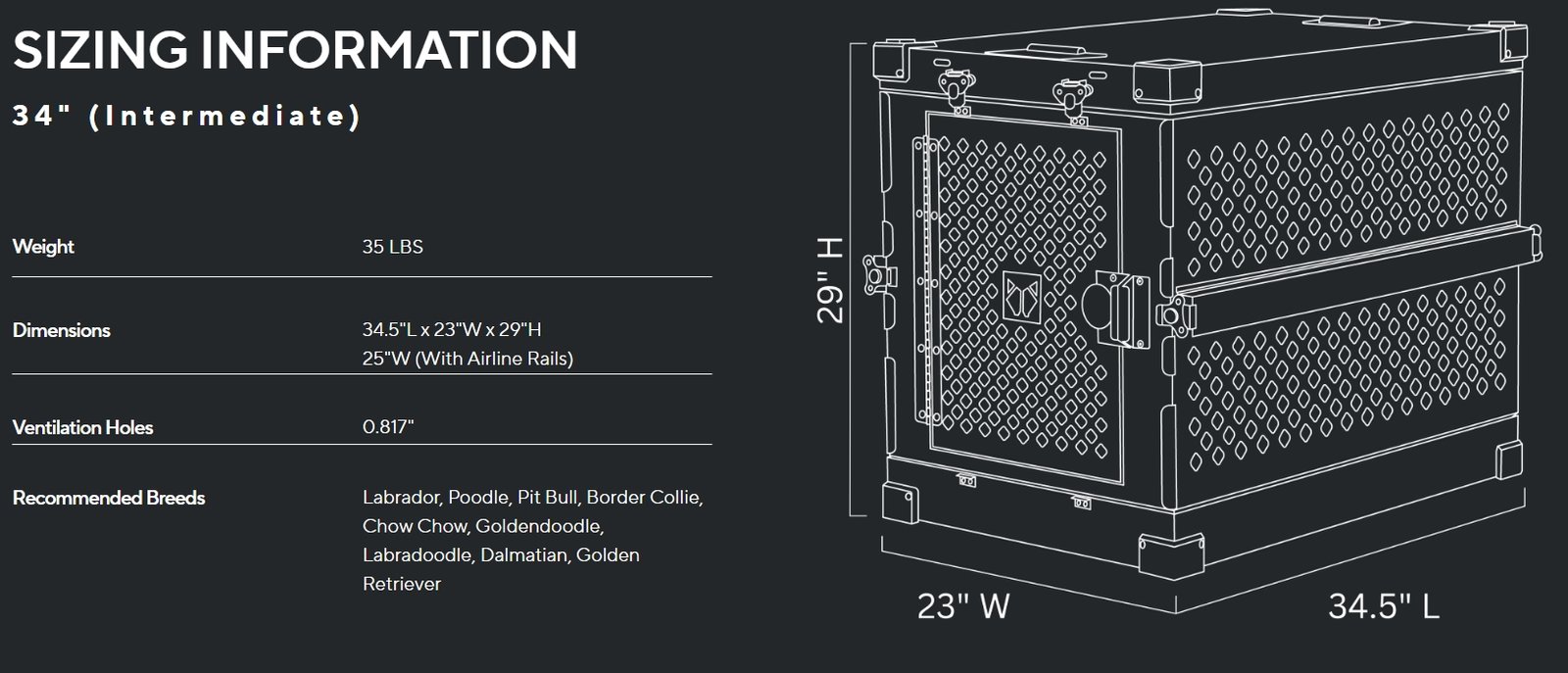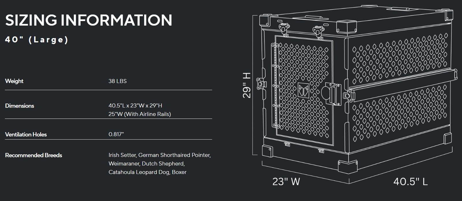 ה-Collapsible Crate זמין במספר גדלים כדי להתאים למגוון גזעי כלבים: