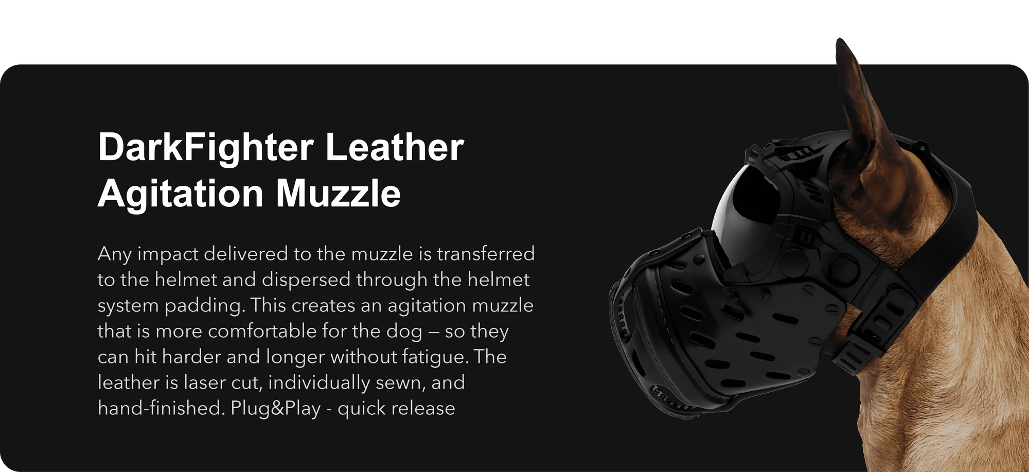 זמם העור לאימוני תקיפה מבית DarkFighter, נועד לספק לכלבי עבודה את הבטיחות והנוחות הדרושים במהלך אימונים אינטנסיביים. הזמם מתוכנן במיוחד לשימוש עם קסדת ה-DarkFighter K9, ומציע מנגנון Plug & Play להתקנה והסרה מהירה.