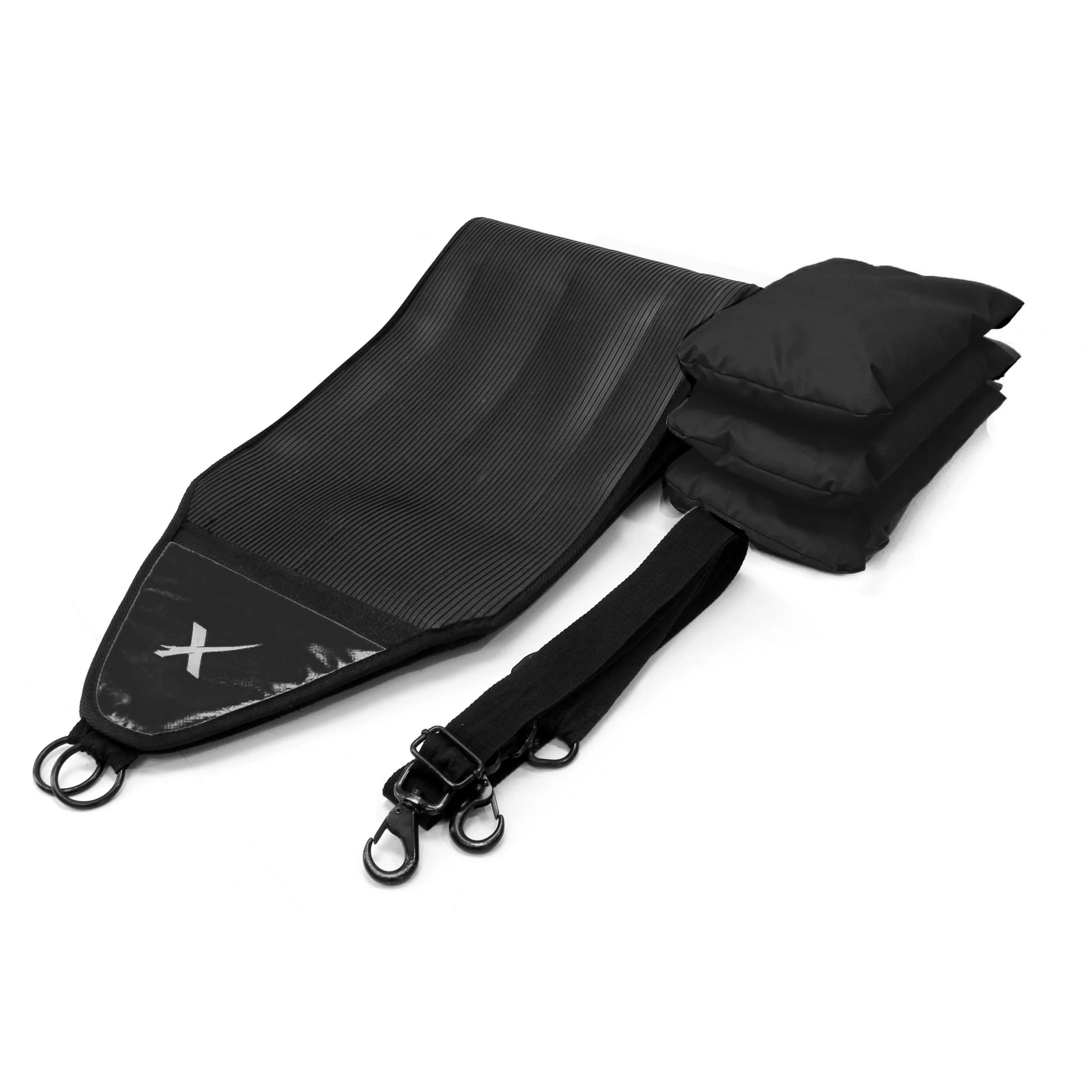 כלול: 3 שקיות משקל ריקות עמידות (שניתן למלא עד 20 ק"ג של חול בסך הכל.) תיק גרור עם קליפסים לחיבור ל-XDOG Vest.